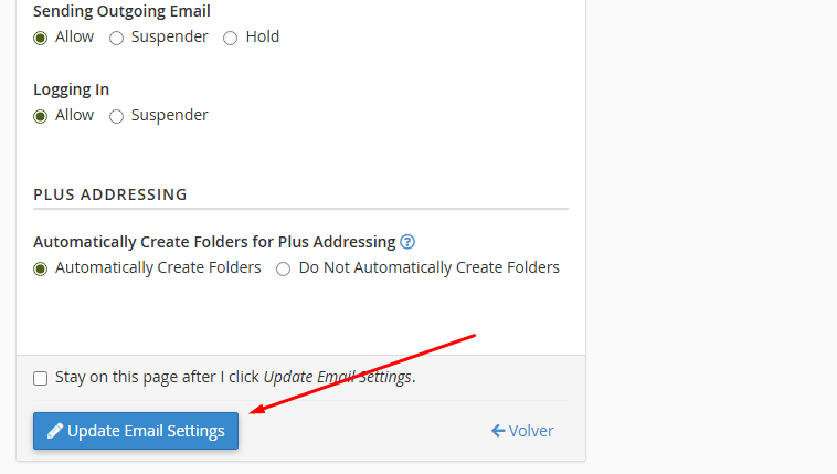 4. Como ultimo paso haga clic en "Update Email Settings".